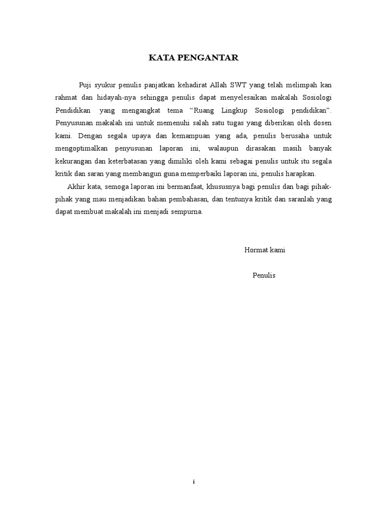 Kata pengantar sering ditemukan dalam halaman depan pada sebuah karya tulis baik karya ilmiah ataupun non ilmiah. Contoh Kata Pengantar Karya Tulis Ilmiah. Contoh Kata Pengantar Makalah Sosiologi ini bisa didownload dalam format document doc atau docx yaitu format file yang bisa diedit dengan menggunakan aplikasi pengolah kata atau software yang biasa digunakan di komputer atau laptop anda untuk mengetik yaitu seperti Microsoft Office Open Office atau pun software lain misalnya untuk Android seperti Polaris Office Microsoft.