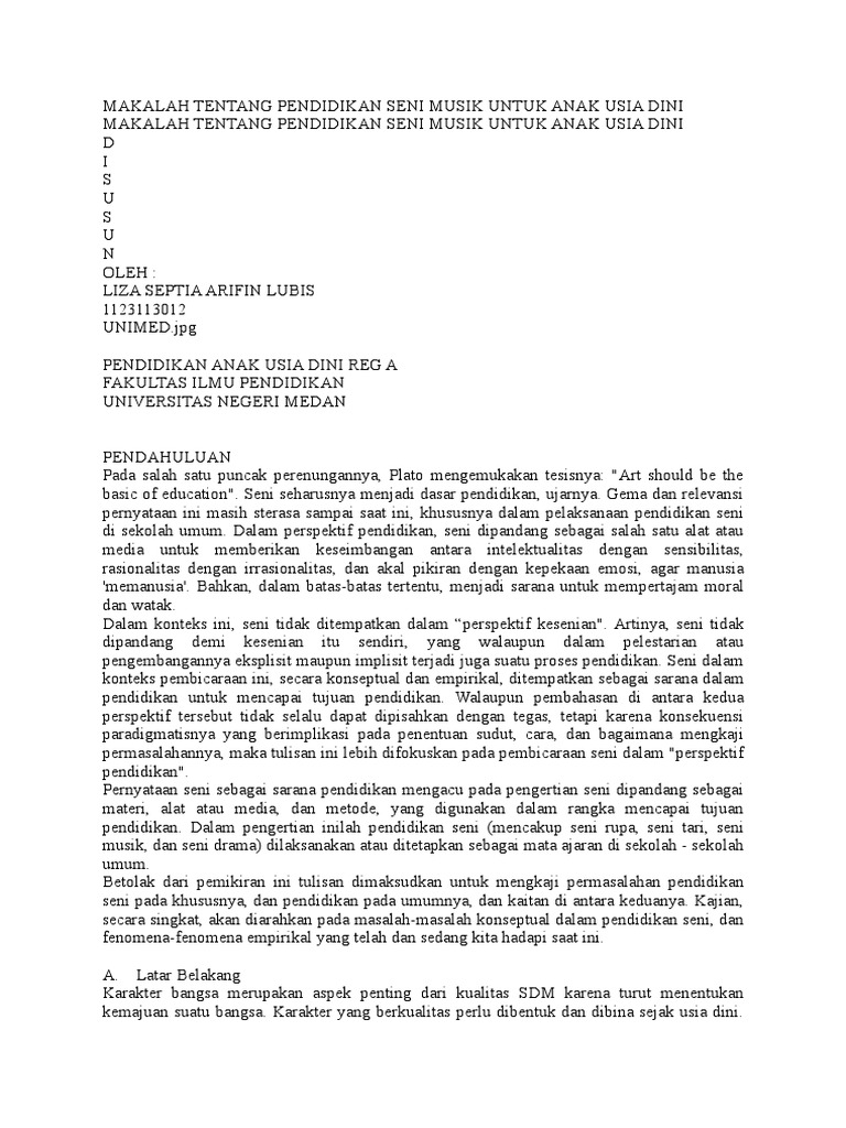 Contoh makalah pendidikan seni musik. Oleh bitar Diposting pada 14 Januari 2021. Walaupun demikian penelitian-penelitian mengenai pendidikan musik ataupun penelitian mengenai musik implikasinya terhadap pendidikan telah. Segala puji bagi Allah SWT yang telah memberikan nikmat serta hidayah-Nya terutama nikmat kesempatan dan kesehatan sehingga penulis dapat menyelesaikan Makalah Makalah dengan judul Apresiasi Seni Musik.