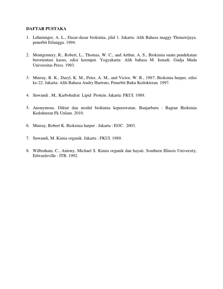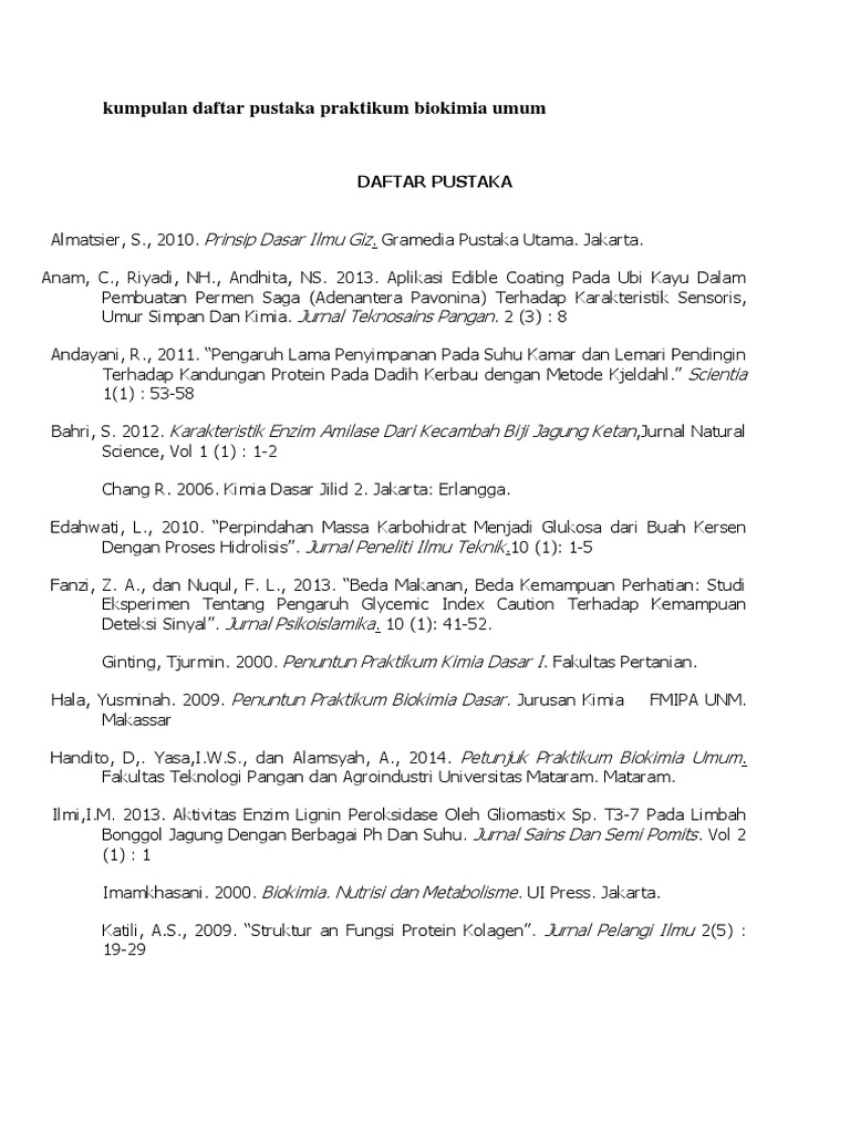 Kumpulan Daftar Pustaka Praktikum Biokimia Umum