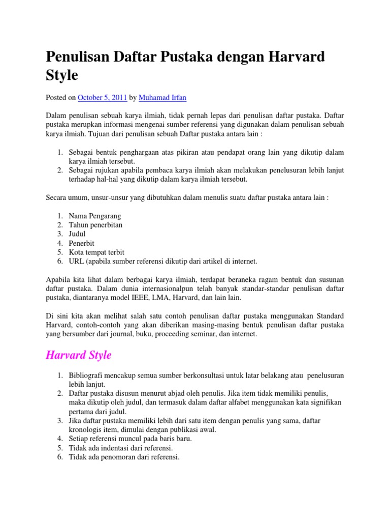 Contoh Daftar Pustaka Harvard Style Bagikan Contoh