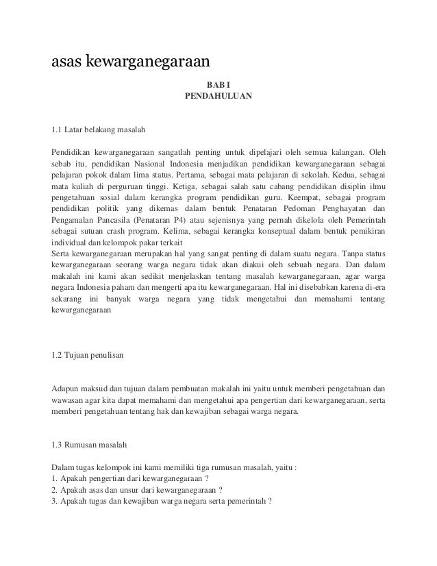 Makalah berjudul Warga Negara dan Kewarganegaraan ini kami buat untk memenuhi salah satu tugas yang diberikan guru mata pelajaran PKN. A Berpikir secara kritis rasional dan kreatif dalam menghadapi berbagai masalah kewarganegaraan b Berpartisipasi secara aktif dan bertanggungjawab serta bertindak secara cerdas dan Kegiatan Bermasyarakat Berbangsa dan. Yang mana keduanya merupakan dasar bagi kita seorang warga Negara agar mengetahui batasan-batasan kewarganegaraan dan memperolehan hak dan kewajiban seorang warga negara.