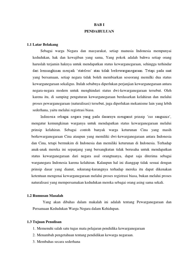 Dalam menentukan kewarganegaraan seseorang dikenal adanya asas berdasar kelahiran dan asas kewarganegaraan berdasarkan perkawinan. Contoh Makalah PKn Kewarganegaraan KATA PENGANTAR. Pasal 1 UU No.