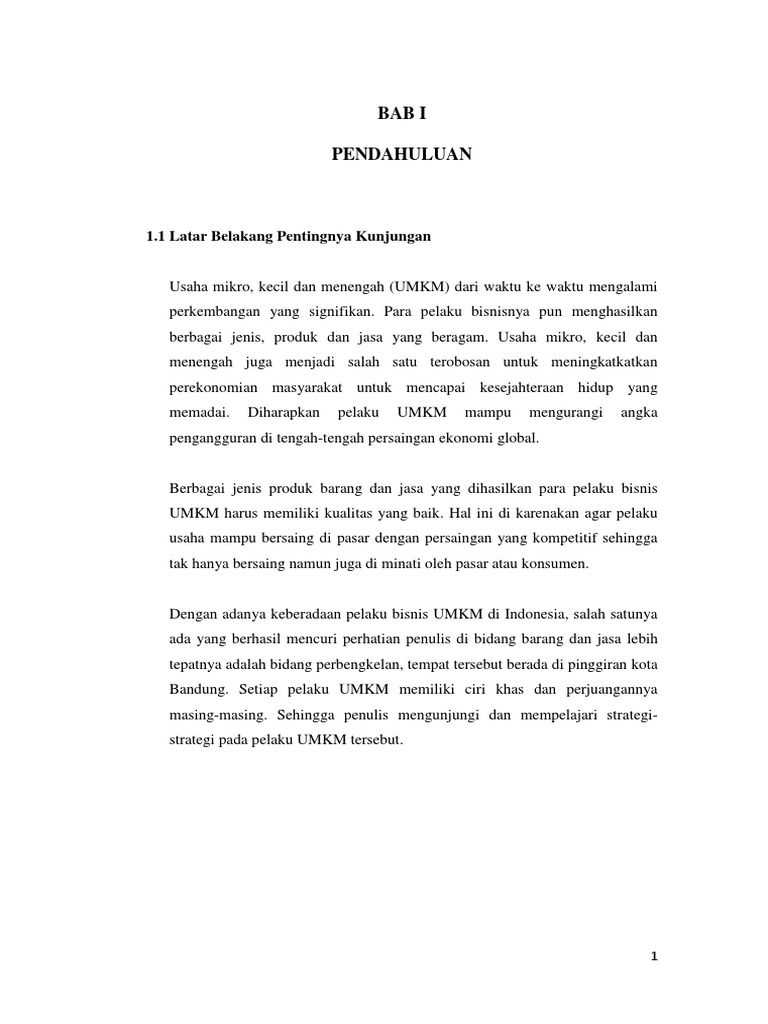 I Pendahuluan A Latar Belakang Usaha Mikro Kecil Menengah