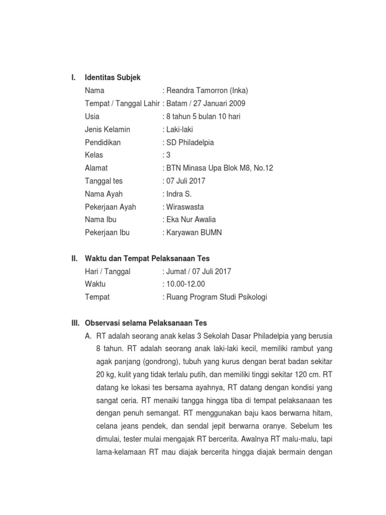 Viral Contoh Laporan Hasil Tes Wisc Viral