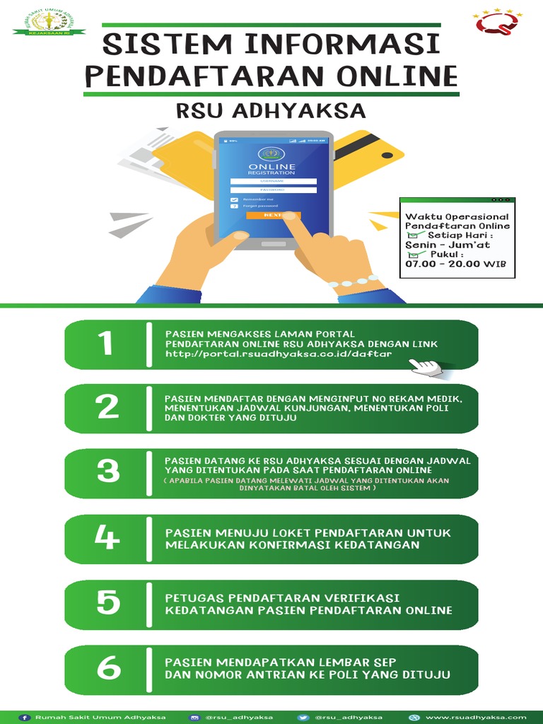 Daftar online rs adhyaksa. Ad Analyze Network Bandwidth Usage. Admin dari blog Daftar Ini 2020 juga mengumpulkan gambar-gambar lainnya terkait link akses portal rsuadhyaksa co id daftar. Aplikasi Pendaftaran Online merupakan aplikasi webbased yang dapat diakses melalui web browser maupun android Kementerian Kesehatan melalui Ditjen Pelayanan Kesehatan melakukan inovasi untuk mengatasi antrian pasien di RS dengan pengembangan SMS Gateway dan Pendaftaran Online.