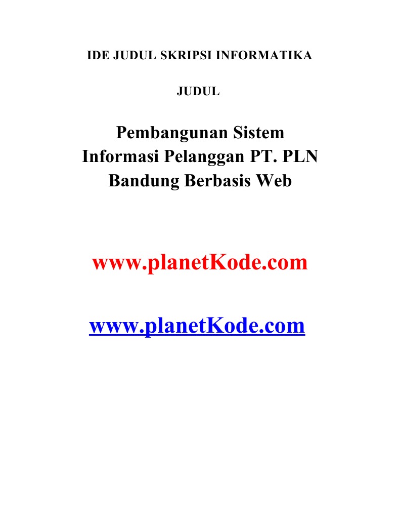 Contoh Skripsi Pembangunan Sistem Informasi Pelanggan Pt Pln Bandung Berbasis Web