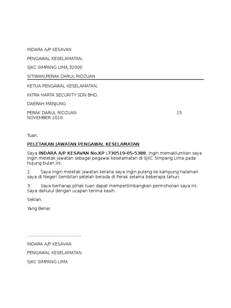 Contoh Surat Letak Jawatan Doc have an image from the otherContoh Surat Letak Jawatan Doc In addition it will include a picture of a kind that could be seen in the gallery of Contoh Surat Letak Jawatan Doc. Contoh Surat Letak Jawatan Doc picture published ang published by Admin that saved inside our collection. Contohnya pengawal keselamatan guru cikgu penjawat awam cashier cleaner dan lain lain lagi.