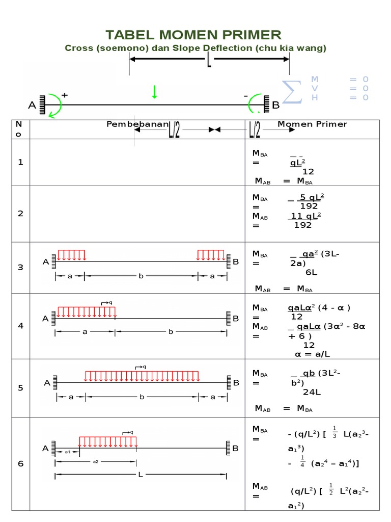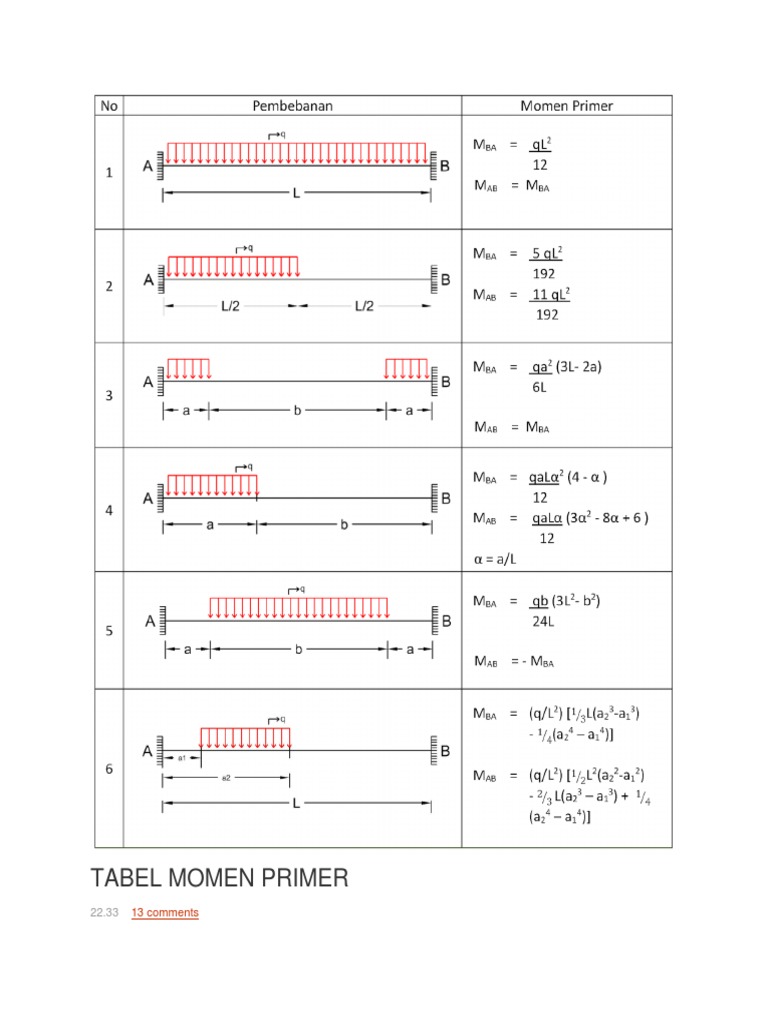 Tabel Momen Primer Metode Slope Deflection Soemono
