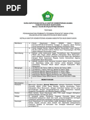 Contoh sk p3n desa. Di samping selaku Pembantu Pegawai Pencatat Nikah yang memberikan pelayanan nikah dan rujuk yang bersangkutan bertugas melakukan pembinaan kehidupan beragama Islam di Desa. SK Tim Penyusun RPJMDes Download. Masa berlaku Surat Keputusan SK P3N sejak tanggal ditetapkan sampai dengan 18 Februari 2019.