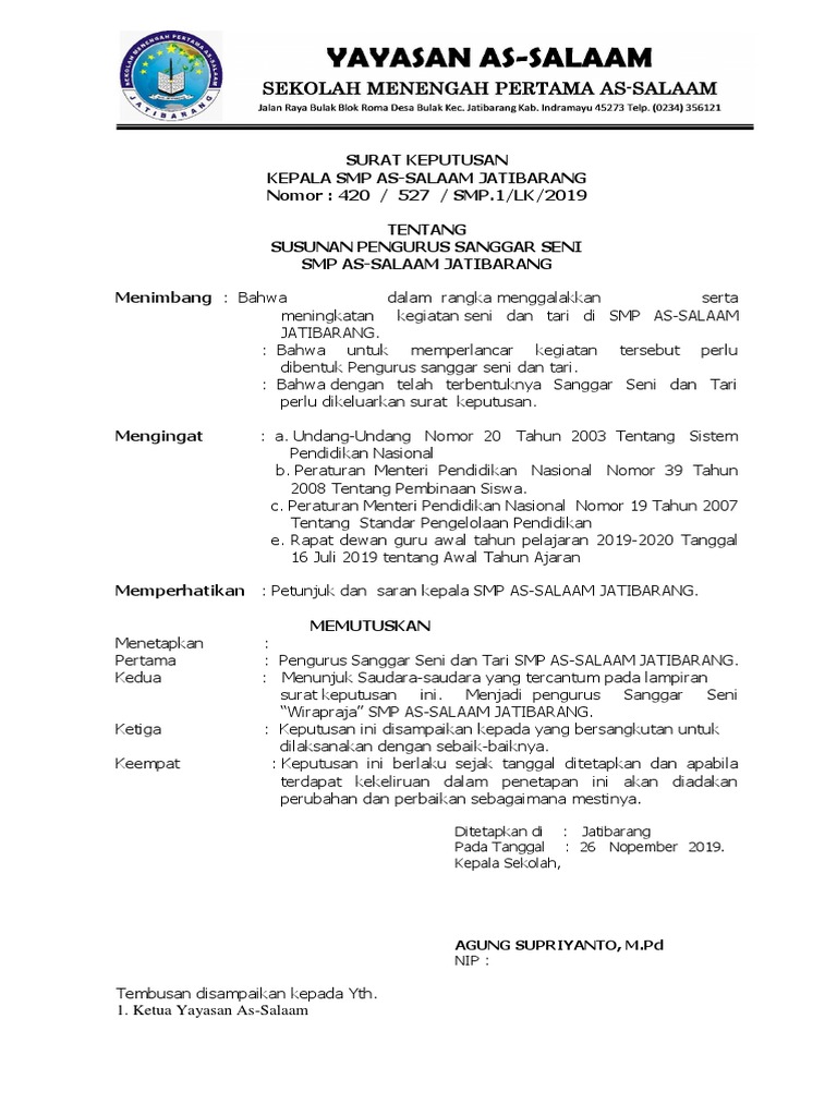 Contoh Surat Keputusan Sanggar Seni Free Download Images