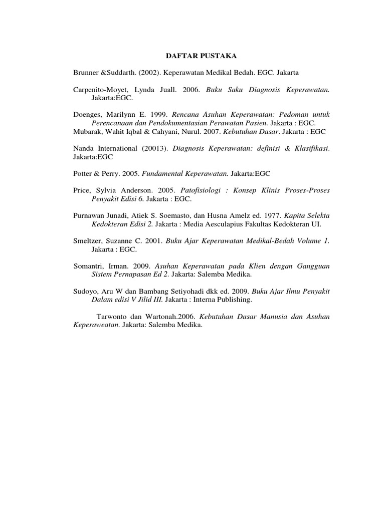 Aliah A Kuswara FF Limoa RA Wuysang. 45 DAFTAR PUSTAKA 1. DAFTAR PUSTAKA Corwin EJ 2009 Buku Saku Patofisiologi Edisi 3 EGC Jakarta Corwin JE.