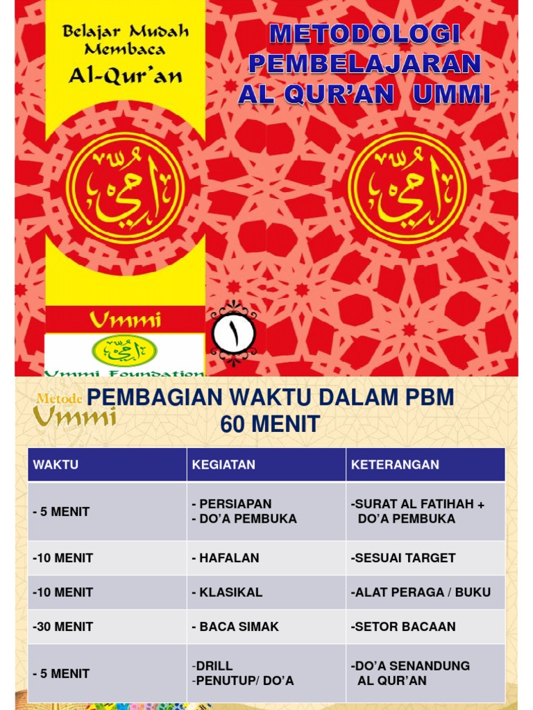 Metodologi pembelajaran al quran metode ummi jilid 2 Slideshare uses cookies to improve functionality and performance and to provide you with relevant advertising. Pembelajaran Metode Ummi melalui 7 tahapan dengan durasi waktu 70 menit atau 2 jam pelajaran. METODE ummi adalah salah satu metode dalam pembelajaran Al Quran.