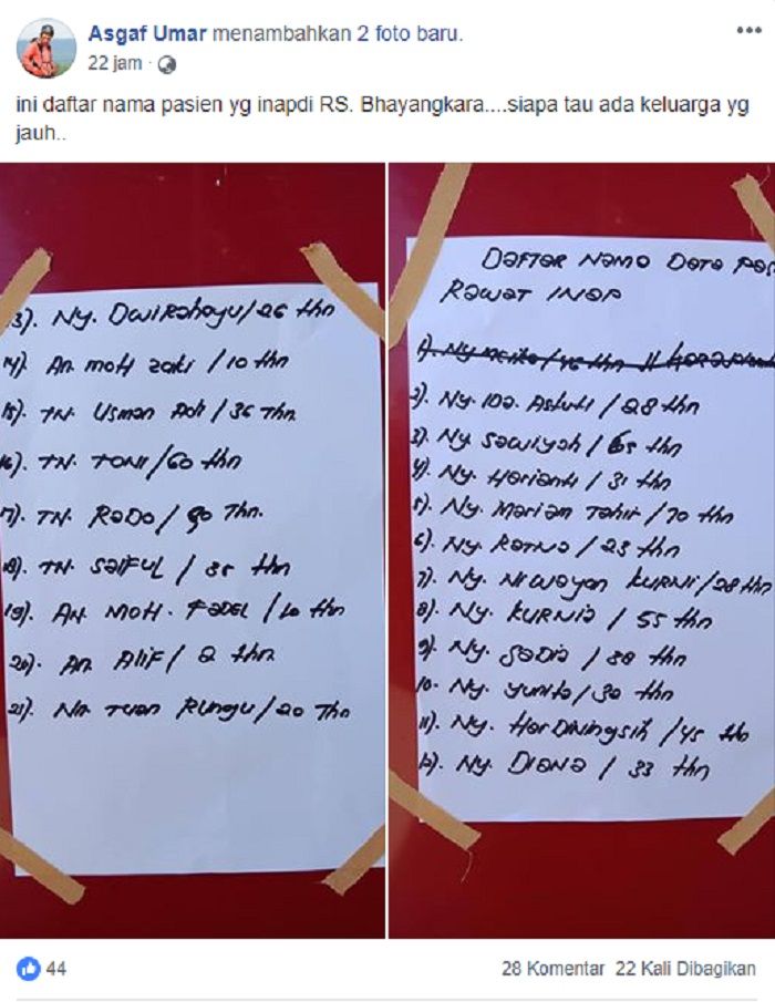 Daftar Nama Korban Gempa Dan Tsunami Palu Donggala Di Asrama Haji Sudiang Tribun Timur