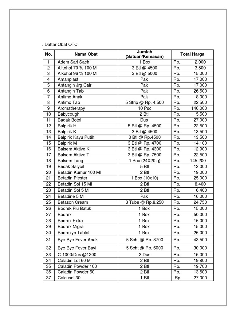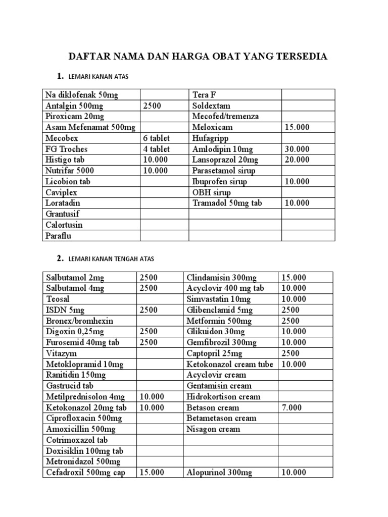 Daftar Nama Dan Harga Obat Yang Tersedia